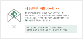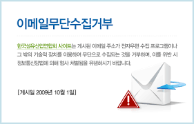 - 누구든지 인터넷 홈페이지 운영자 또는 관리자의 사전 동의 없이 인터넷 홈페이지에서 자동으로 전자우편주소를 수집 하는 프로그램 그 밖의 기술적 장치를 이용하여 전자우편주소를 수집하여서는 아니된다.