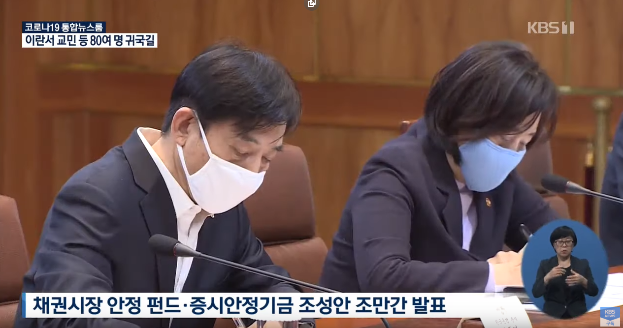 코로나로 인하여 어려운 채권시장 안정 펀드, 증시안정기금을 조성하기로 하고 그 내용을 조만간 발표하기로 했습니다. 또 일자리를 잃은 취약계층에 대해서도 지원 방안을 준비중입니다.