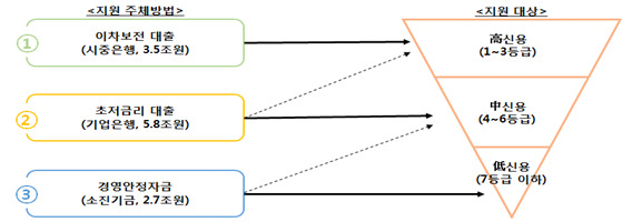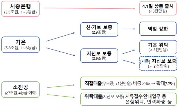 앞서도 보여드렸던 신용등급별 지원 주체를 분리한 것도 조금이나마 분산처리하려는 모습이었지만